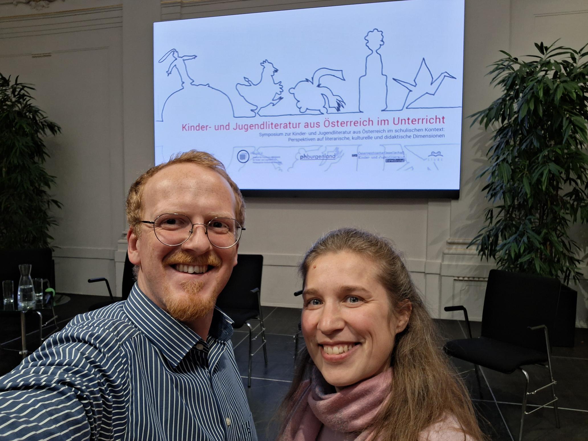 Lehrerin Regina Thurner und Lehrer Thomas Lenardt informieren sich in Graz über Neuigkeiten und planen spannende Leseaktivitäten an der Mittelschule Guntramsdorf.